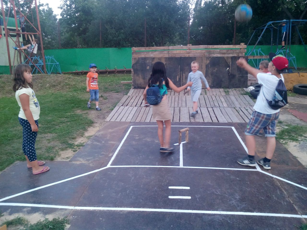 Лебедянские дети играют в городки и народные игры на городошной площадке, возрожденной лебедянскими городошниками в 2017 году. лебедянь, Центральный стадион